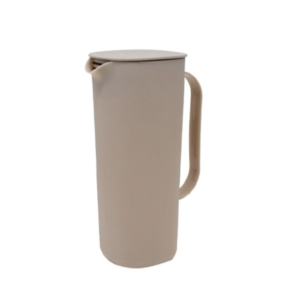 Generic - Large Water Pitcher with Lid, 1L Capacity, Beige Plastic, Ergonomic Handle