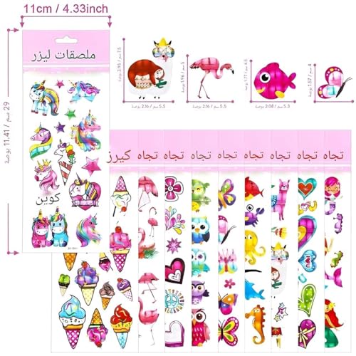 Generic - Laser Stickers - Cute assorted designs for kids featuring kawaii animals, unicorns, mermaids, and flowers perfect for sticker books or scrapbooking projects today. (Model 10)
