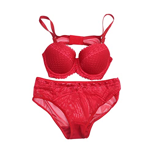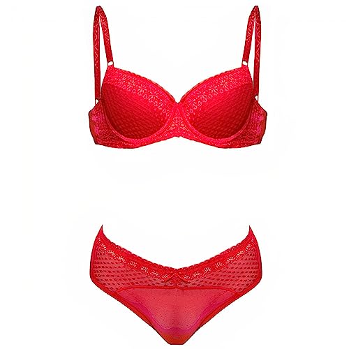 Lasso - طقم لانجري ليكرا بقصة ملائمة مكون من قطعتين (حمالة صدر وملابس داخلية) من لاسو - أحمر - مقاس XL