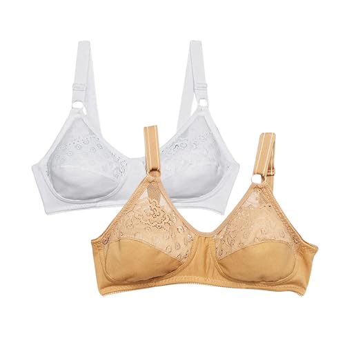 Lasso - Lasso Pack of 2 Women's Floral Lace Wireless Comfort Non Padded Cotton Bra
