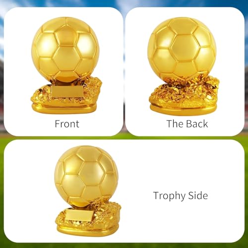 Lastingset - 6.3 Inch Ballon d'Or Trophy Football Trophy, Golden Ballon Football Trophy, Best Soccer Trophy Resin Replica with Electroplating Process for Office Decorations Fans Gifts and Birthday Gift