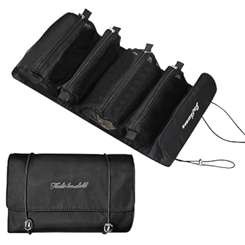 - جودة عالية ومقاومة للماء: مصنوعة من قماش بولي يوريثان قوي بسوست عالية الجودة للحفاظ على المكياج وأغراضك الشخصية في المكان المناسب - سواء تم لفها أو تعليقها على باب الحمام.