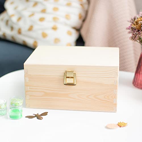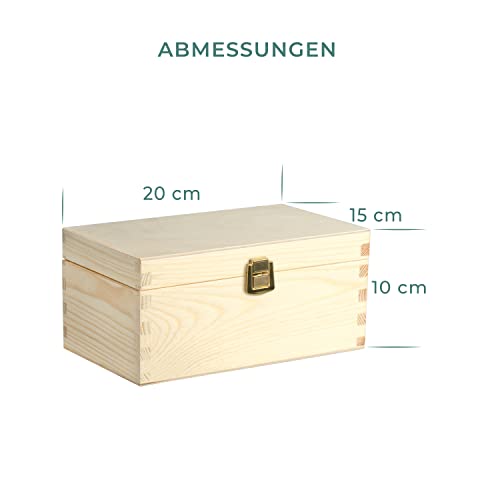 LAUBLUST - LAUBLUST Small Wooden Box with Lid and Lock Approx. 20 x 15 x 10 cm Natural Storage Box Craft & Gift Box