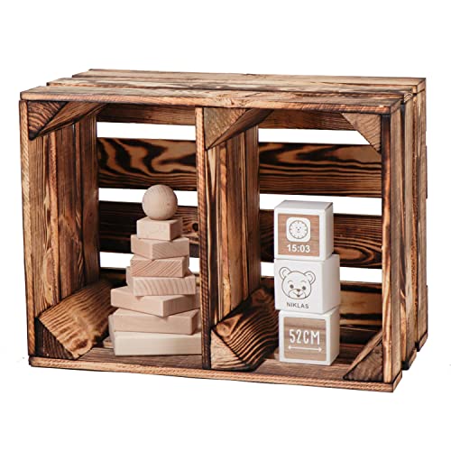 - Trendy and comfortable living: burnt wine box including shelf. With this flambéed fruit and apple box in a warm vintage look, you can create a stylish home to feel good all around