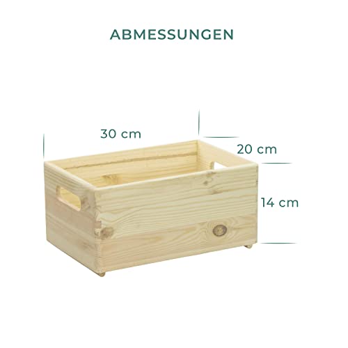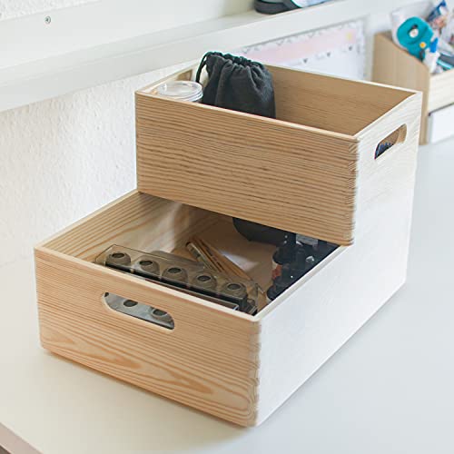 LAUBLUST - LAUBLUST Wooden Box with Handles – Approx. 30 x 20 x 14 cm, Natural | Stackable Multi-Purpose Box Made of Wood FSC - Storage Box | Gift Packaging | Decorative Box for Crafts | Kitchen Box, Toy Box