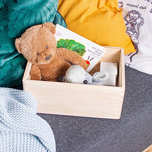 - For your favourite pieces: Pretty untreated wooden box without lid for natural storage of all things you care about. Storage box with handle, e.g. for photo albums and much more.