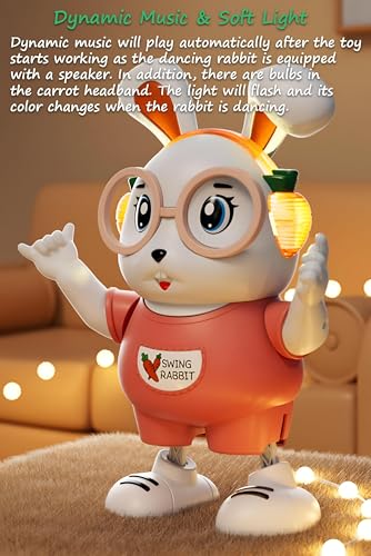 - Responsive to music rhythm, the rabbit moves its ears and feet in sync.