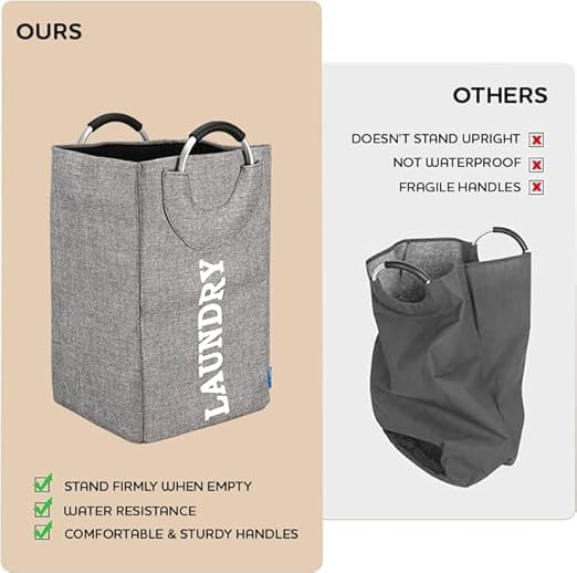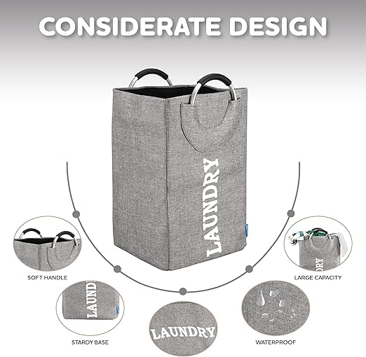 - Comfortable Handle: As the handle is made of aluminum with soft EVA grip, you will find it very soft and comfortable when used. And you can carry a full basket with minimum effort on your arms. The aluminum handle is connected to the laundry basket allowing you to carry it anywhere easily.