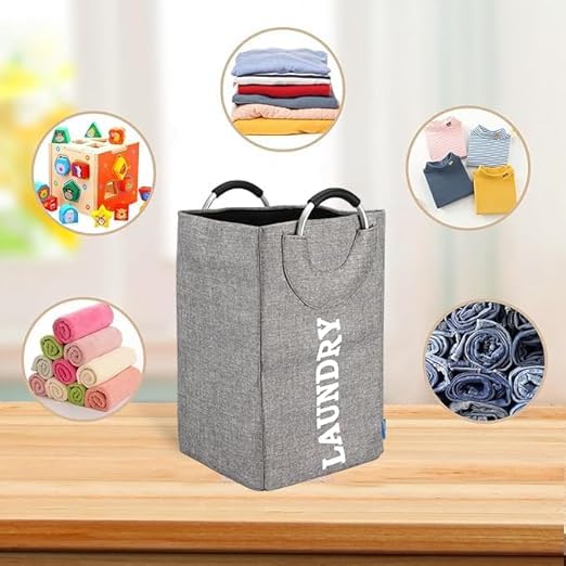 - Package contains 1 Piece Imported Foldable Jute laundry hamper bag, Dimension: 30*32*58 cms, Material: Made with thick heavy-duty polyester, Features perfect size considering household utility, Cushioned metal handles for comfort, you can fold (foldable) and keep it anywhere when not in use also saves space and easy to use keep.