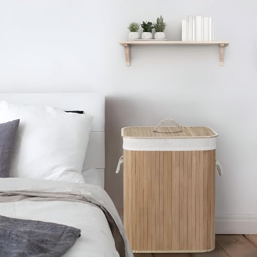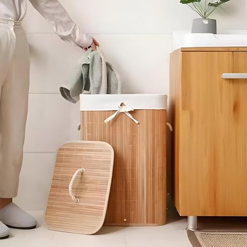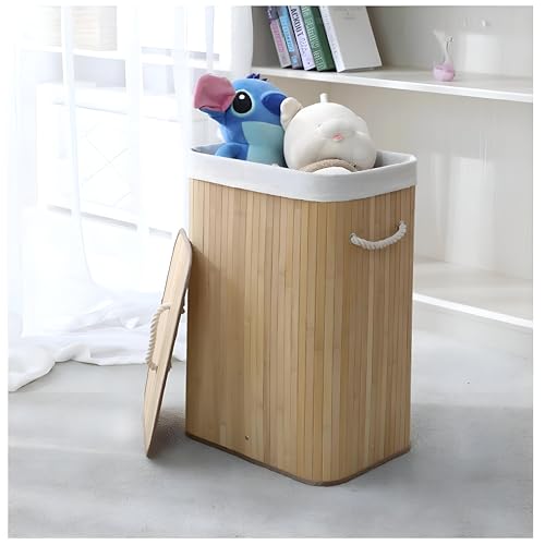 Generic - Laundry Basket - Collapsible Bamboo Laundry Hamper with 75L Capacity, 60 * 40cm Size, Lid and Handles, Ideal for Easy Storage.