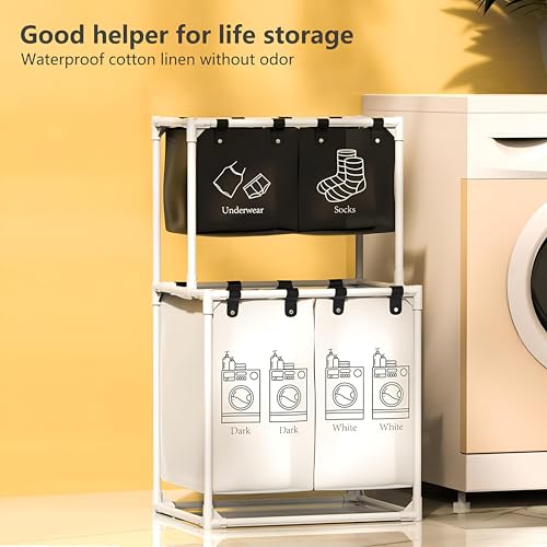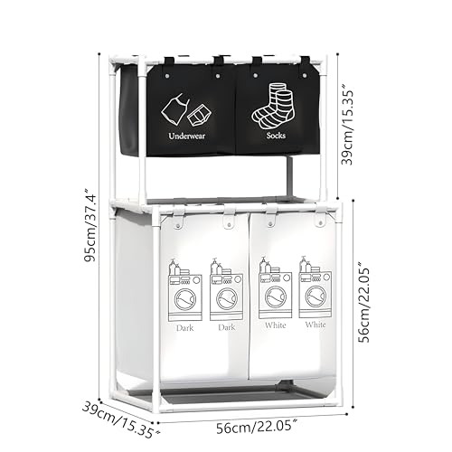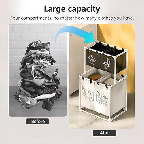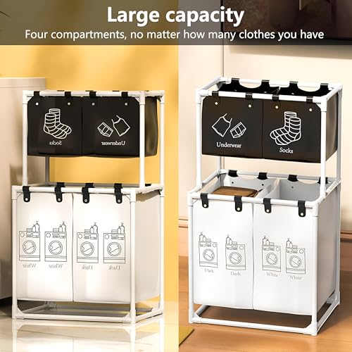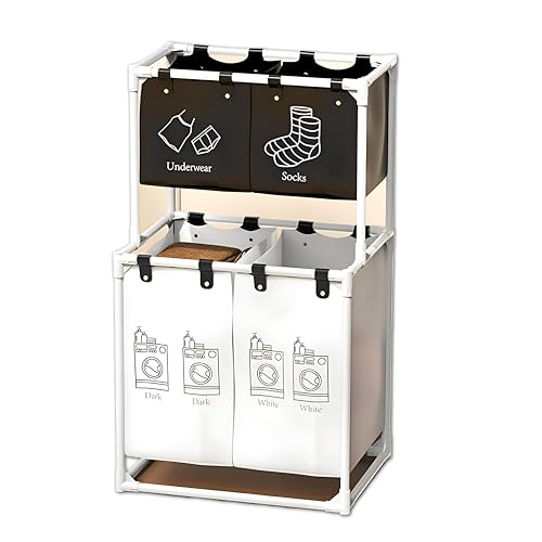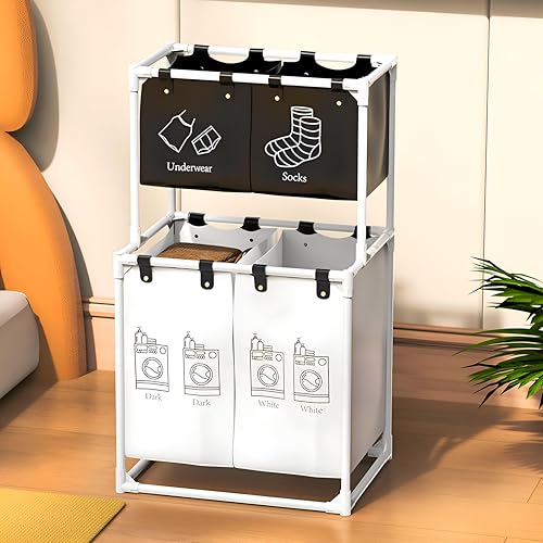 Generic - سبت غسيل - تصميم عمودي مزدوج المقصورة مع جيوب قابلة للإزالة وأربعة أقسام لتنظيم الملابس المتسخة