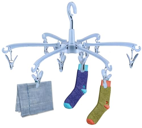 - [Foldable Design] The clip hanger can be folded and stored when not in use. This saves space and requires no assembly. The convenient plastic sock drying rack is lightweight and suitable for camping and holiday travel.