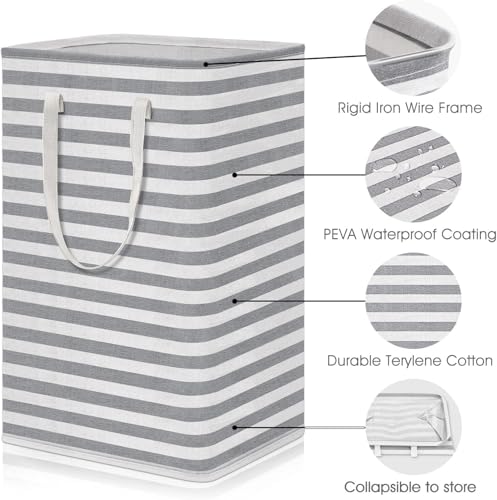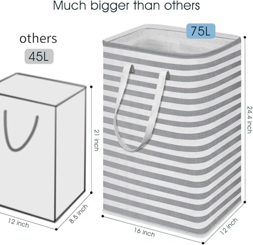 Spaceshoop - سبت غسيل كبير قابل للطي وطويل سعة 75 ل مع مقابض مستقلة ومقاومة للماء لتخزين للملابس والألعاب 60 * 40 * 30 سم (قطعتان)