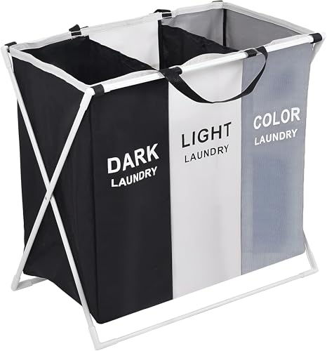 Generic - سلة غسيل - حقيبة تخزين قابلة للطي ومقاومة للماء ومتعددة الأقسام بإطار من الألومنيوم، مثالية لتخزين الملابس النظيفة والمتسخة في الحمام وغرفة الغسيل وغرفة النوم