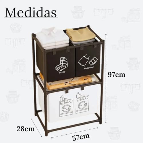 Generic - استاند غسيل 2 دور بثلاث باسكت – هيكل معدني ثابت – قماش ووتر بروف – مقاس 97 × 28 × 57 سم S