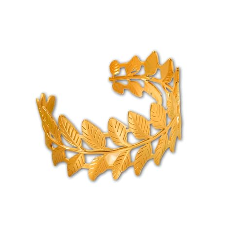 Generic - سوار بتصميم ورقة الغار - سوار انيق للنساء من الستانلس ستيل بلون ذهبي مع اذني قمح، مثالي للمناسبات الاحتفالية والارتداء الكاجوال وهدايا العطلات المدروسة