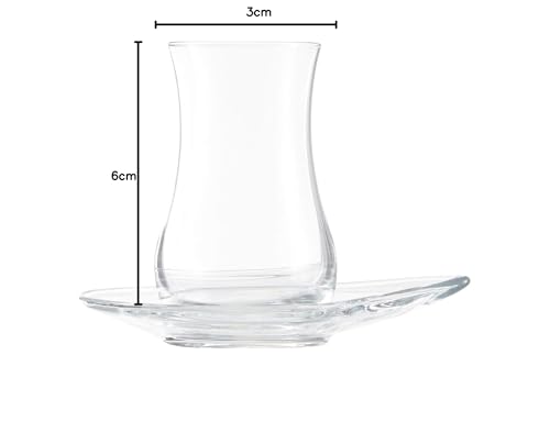 LAV - LAV EVA Tea Glass / 12 Pcs including Saucers / 170 cc - 5.75 Oz/Elegant design, Trusted Brand, Attractive shape of Tea, Coffee