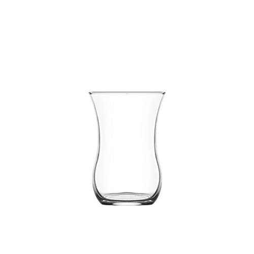 LAV - LAV Klasik Glass Tea Cup and Saucer Set - Clear Cups for Coffee, Hot Drinks - 115ml - Set of 12