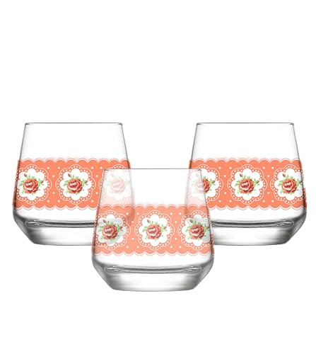 LAV - طقم كؤوس زجاج لال بطباعة ديكالا 2610 من مواد عالية الجودة وتصميم أنيق من علامة تجارية موثوقة وشكل جذاب للمشروبات الفوارة والمشروبات الغازية والعصائر السموذي والكوكتيلات من لاف، سعة 345 مل، 3 قطع