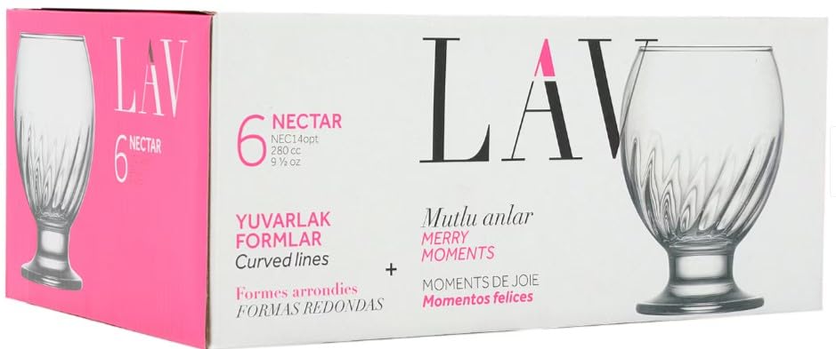 LAV - LAV NECTAR Glass / 280 cc - 9.50 Oz / 6 Pcs/Elegant design, Trusted Brand, Attractive shape of Sparkling Drink, Soft Drink, Smoothies, Juices, Cocktails