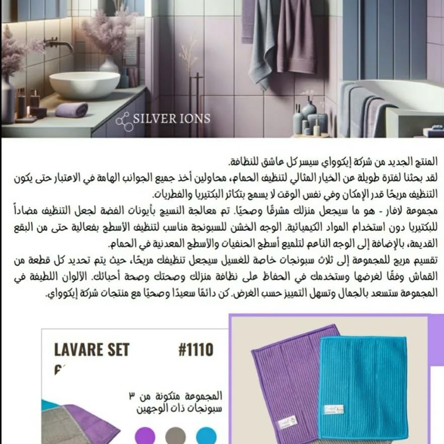 Generic - Lavar Set of 3 Essential Bathroom Cleaning Towels, Supported by Silver Ions, Each Towel is Customized to Use to Fit Your Essential Bathroom Cleaning Needs by Ecoway