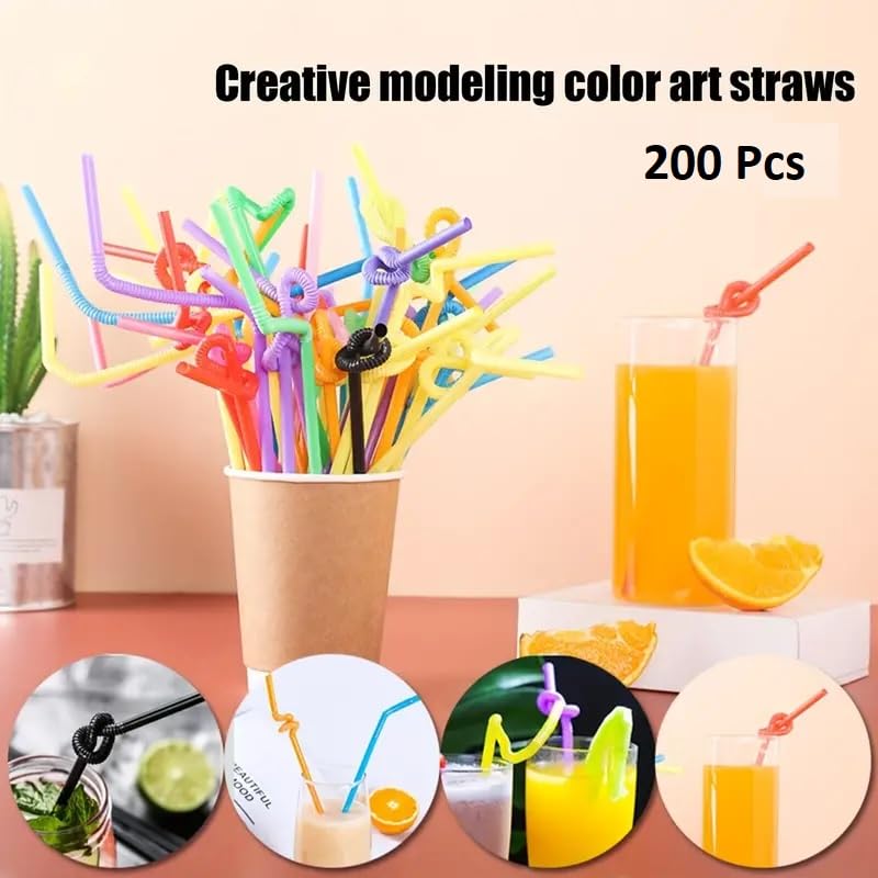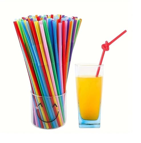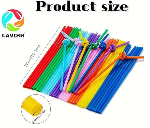 LAVISH - LAVISH 200Pcs Disposable Plastic Flexible Extra Long, Bendable Colorful Straws For Milkshakes, Smoothies, Boba, Bubble Tea, Ice Coffee, Party Supplies