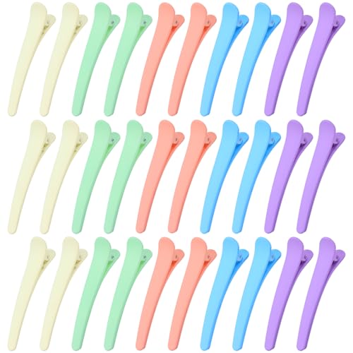Lawie - لوي 30 قطعة من مشابك شعر التمساح البلاستيكية الملونة الكبيرة 7.5 سم 3 انش لتصفيف الشعر، مشابك شعر صالونات تصفيف الشعر، مشابك شعر مسطحة للنساء والفتيات (الوان الحلوى)