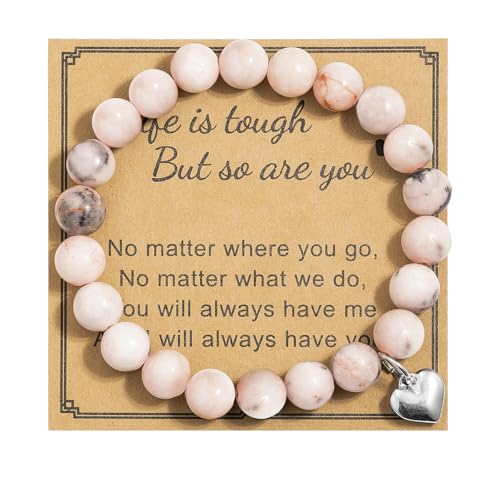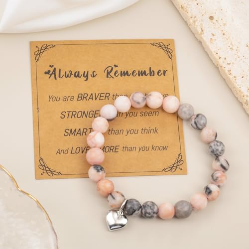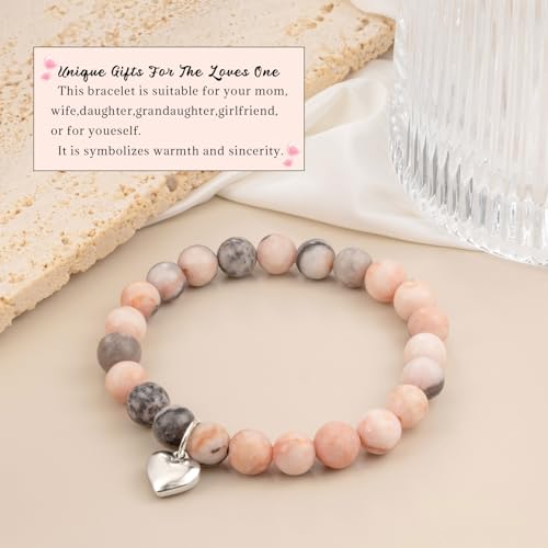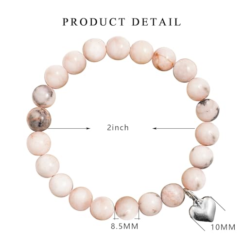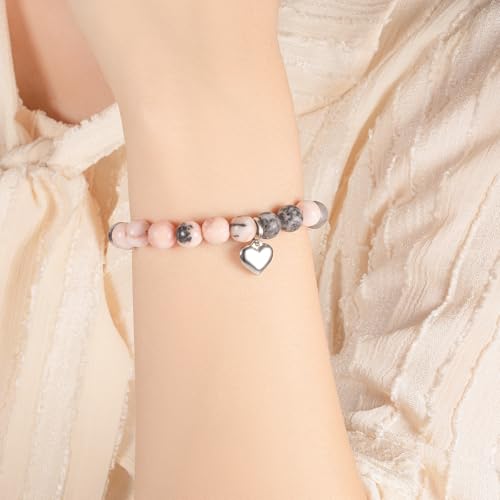 LAXPICOL - LAXPICOL Bracelet For Women,Pink Zebra Beads Stretch Anxiety Bracelet For Women,Natural Crystal Bead Bracelet With Heart Shaped Pendant, Beaded Bracelet Jewellery For Christmas Birthday Gifts