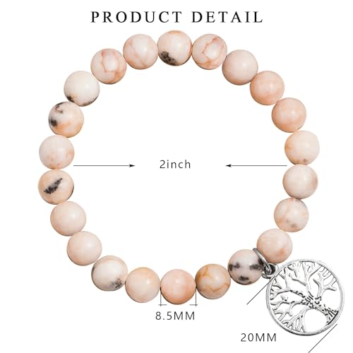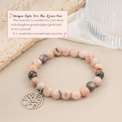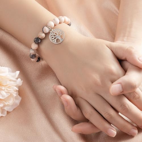 LAXPICOL - سوار كريستال من لاكسبيكول مرن الكوارتز للنساء خرز الأحجار الكريمة الطبيعية أساور مع صندوق هدايا شجرة الحياة لهدايا الكريسماس