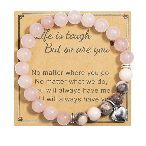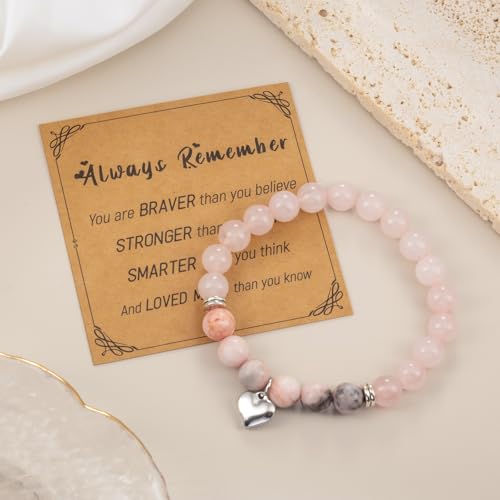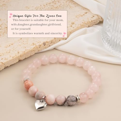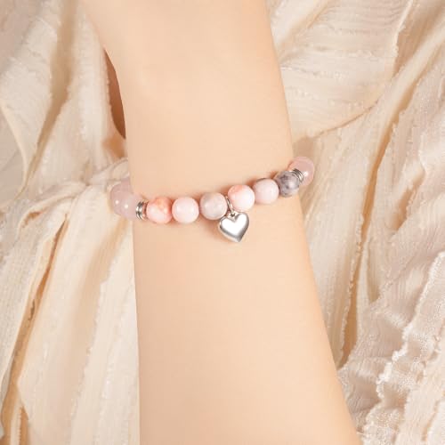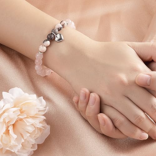 LAXPICOL - LAXPICOL Crystal Bracelet, Quartz crystal stretch bracelet for women, Natural Gemstone Bead Bracelet for Women with Heart shaped pendant,Beaded Bracelets For Her Christmas Valentine's Gifts