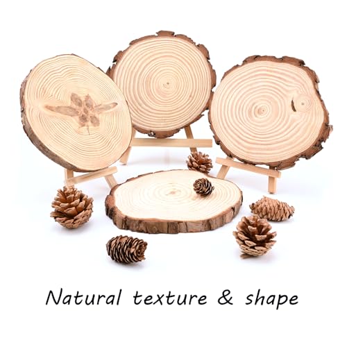- 【Natural Wooden Slices】The Wood log slices are made of natural pine wood with barks, with flat surface sanded and polished, ensure safe use and preserve the natural style.