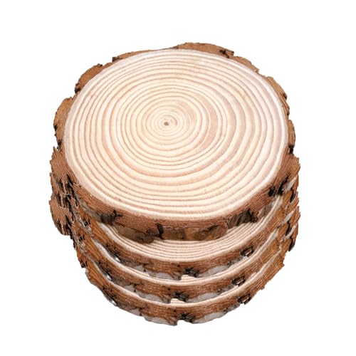 LAXZANT - Wood Slices 14-16 CM for Crafts, Big Unfinished Natural Wooden Circles, Wooden Bases for Craft for Pyrography DIY Wooden Coasters Crafting Christmas Candle Decorations (4)