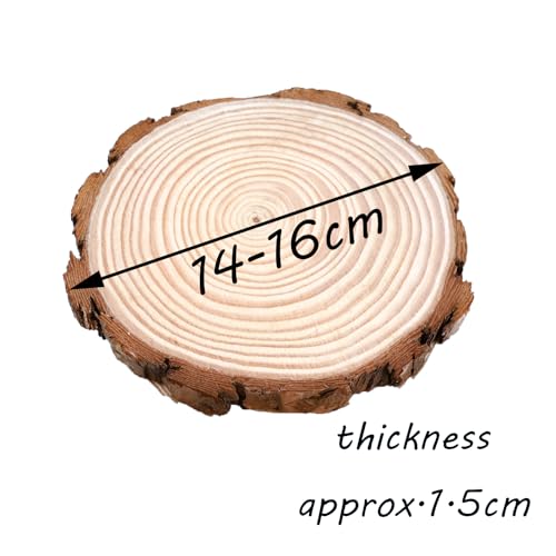- 【Quantity Size】Package includes 2 pieces wooden log circles, each one wooden slice diameter is approx. 14-16cm, thickness approx. 1.5 cm.