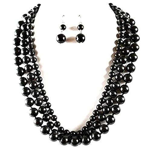 Other - عقد انيق واقراط من المايوركا الاسود متعدد الأدوار، للنساء