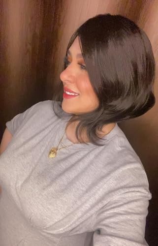 - مزايا التصميم: شعر مستعار صناعي بطول الكتف بتصفيف بطبقات جميلة وغرة جانبية لمظهر عصري وجذاب.