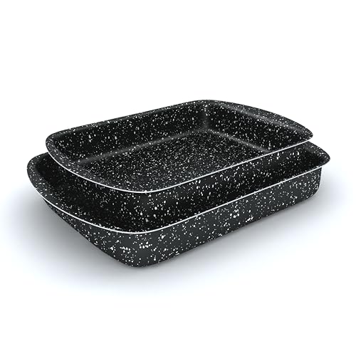 Lazord - طقم طاجن فرن مستطيل 2 قطعة مقاس 30 - 35 سم جرانيت بلس اسود