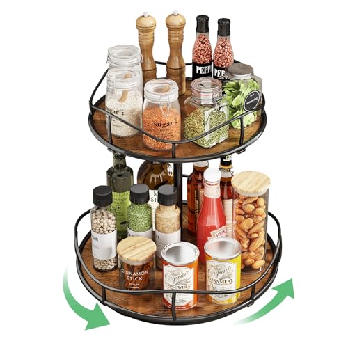 generic - رف توابل دوار من ليزي سوزان - 2 طبقة 10 انش خشبي دوار ليزي سوزان لخزانة المؤن والمطبخ وطاولة الطعام والتنظيم والتخزين