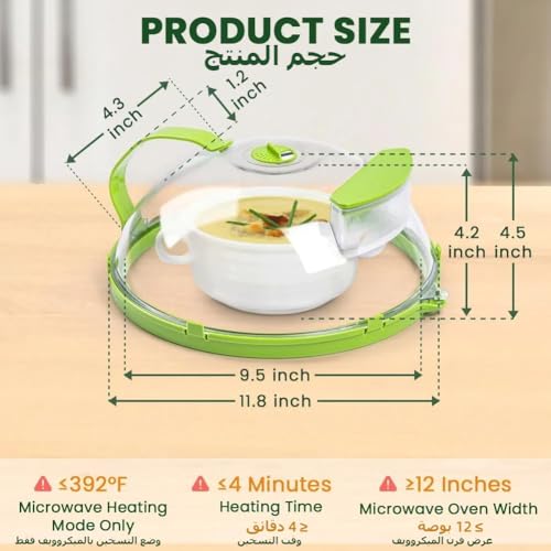 - ملاحظة مهمة: لا يمكن استخدام غطاء رذاذ الميكروويف هذا إلا في وضع الميكروويف، ويحظر استخدام الشواية أو الموجة الخفيفة أو المزج أو وضع الحمل الحراري للهواء الساخن. لا يجب أن تتجاوز درجة الحرارة 227 درجة مئوية ووقت التسخين عن 4 دقائق. يوصى بالغسيل اليدوي فقط.