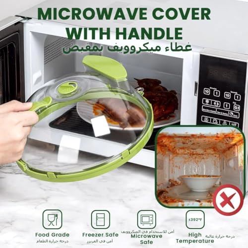 LBMT - غطاء شفاف الميكروويف مع جهاز بخار ماء ومقبض، غطاء أطباق 25 سم لأدوات المطبخ وملحقاتها
