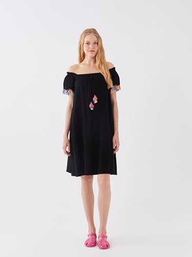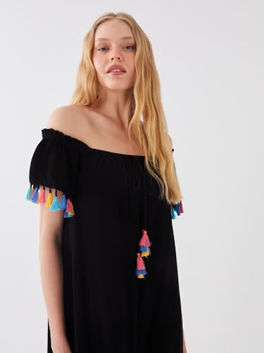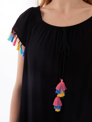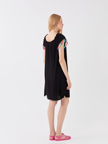 LC WAIKIKI - LC واكيكي فستان شاطئ مزين بشراشيب وقبة قارب للنساء