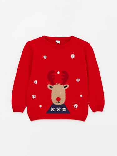 LC WAIKIKI - ال سي وايكيكي سويتر تريكو للأولاد برقبة دائرية ضيقة وأكمام طويلة بطابع العام الجديد