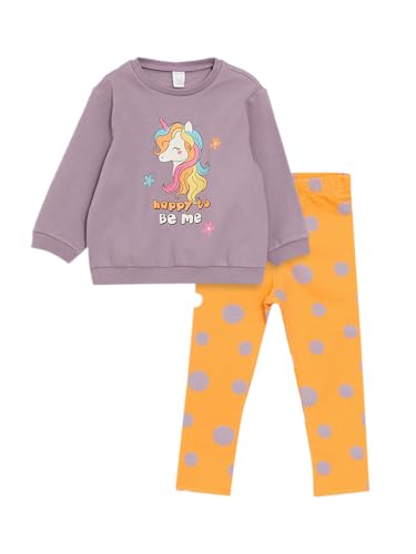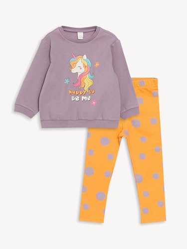 LC WAIKIKI - LC WAIKIKI Crew Neck Long Sleeve Printed Baby Girl Sweatshirt and Tights 2Pack Set