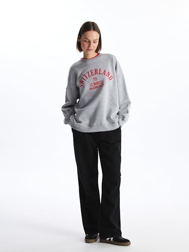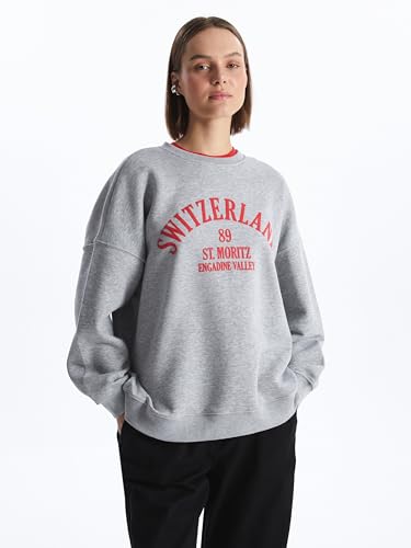 LC WAIKIKI - LC WAIKIKI Crew Neck Printed Long Sleeve Oversize Women's Sweatshirt XS-S Grey