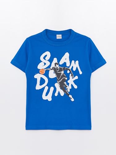 LC WAIKIKI - LC واكيكي تيشرت مطبوع باكمام قصيرة ورقبة دائرية ضيقة للاولاد بعمر 8-9 سنوات، ازرق