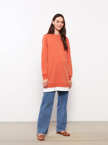 LC WAIKIKI - LC واكيكي سويت شيرت برقبة دائرية ضيقة واكمام طويلة للنساء W2Ev05Z8-Sje-1 S برتقالي