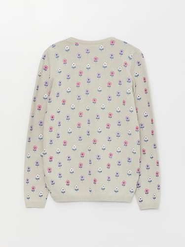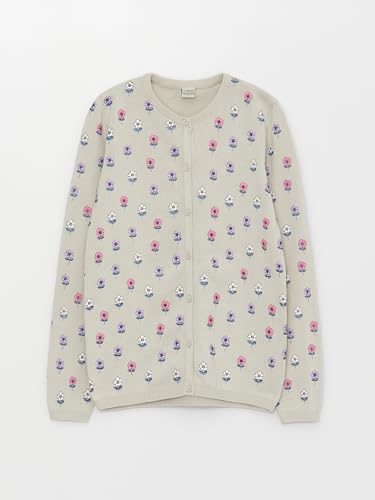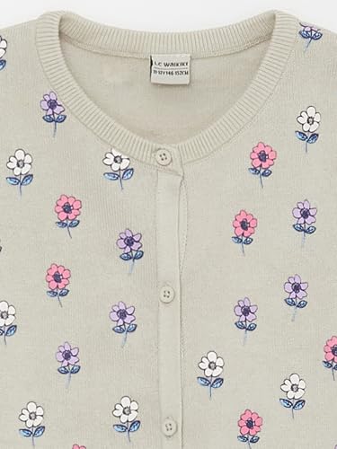 LC WAIKIKI - LC WAIKIKI Girl Crew Neck Printed Long Sleeve Knitwear Cardigan