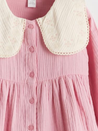LC WAIKIKI - فستان قماش موسلين (موصلي) بأكمام طويلة وياقة بيتر بان للبنات من ال سي وايكيكي