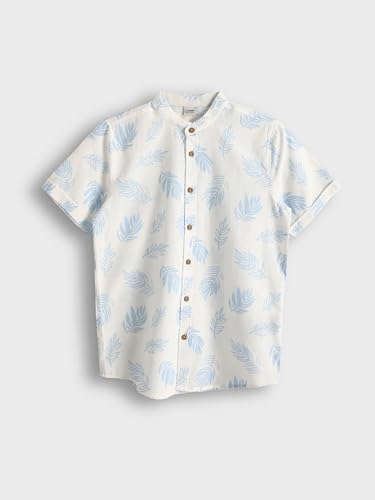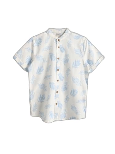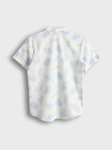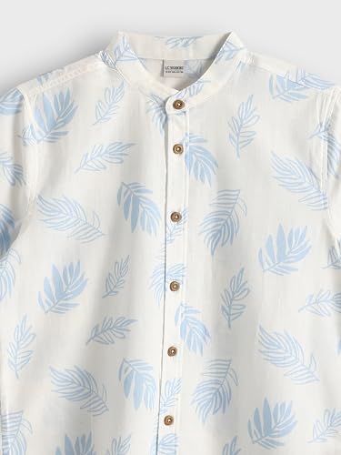 LC WAIKIKI - LC WAIKIKI Grandad Collar Patterned Short Sleeve Boys' Shirt WHITE