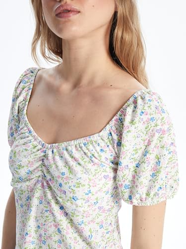 LC WAIKIKI - فستان بأكمام قصيرة وياقة على شكل قلب للنساء من ال سي وايكيكي
