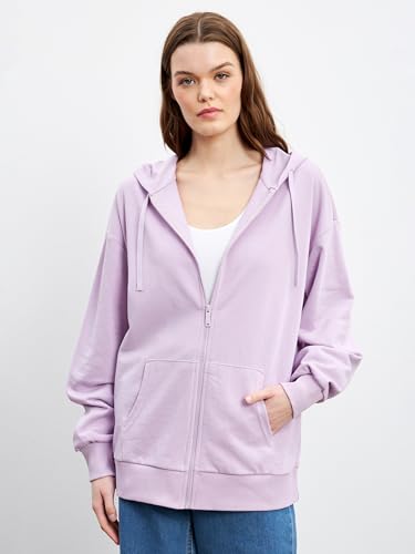 LC WAIKIKI - سويت شيرت بغطاء للرأس وسوستة بمقاس كبير للنساء من ال سي وايكيكي، مقاس ميديوم